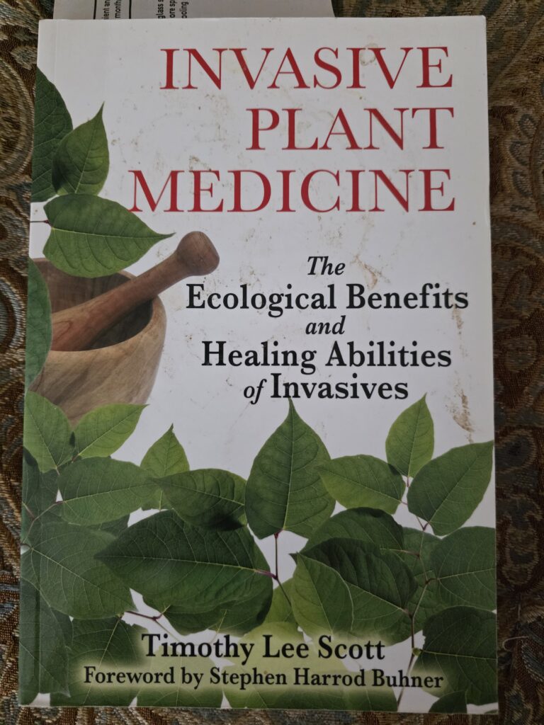 Invasive Plant Medicine by Timothy Scott. Last but certainly not least, is this book. I like to take it with me out in the pasture (as you can tell!). We have so many plants that we think are useless – Russian olive, bindweed, thistle and are considered ‘noxious’ weeds. They are not. They absolutely can be invasive, but some have amazing uses. I really wish Tim Scott would do another volume with additional invasives. This book is also arranged by plant with botanical drawings and maps of common areas of growth but also has historical uses and quotes from explorers and native American herbalists.