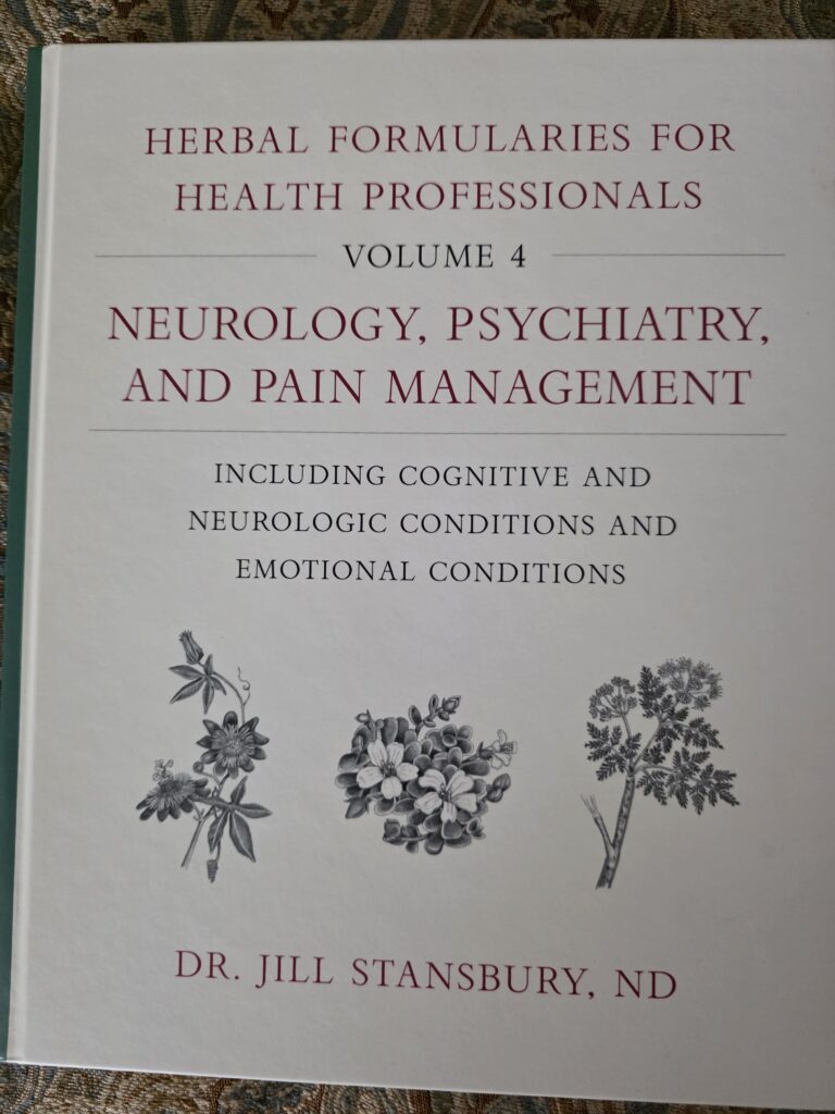 Herbal Formularies for Health Professionals by Dr. Jill Stansbury. This is volume 4 of a five-volume set. Very well written at a more professional level than just ‘throw the herb in some vodka and hope for the best.’ She does use some herbs that are VERY low dose (and the dose makes the poison). I would not recommend these for a beginning herbalist. The formulations she uses are well thought out and balanced but can be edgy with using herbs that I would not consider safe for anyone but a professional herbalist with good insurance to use.